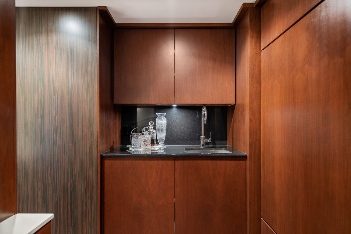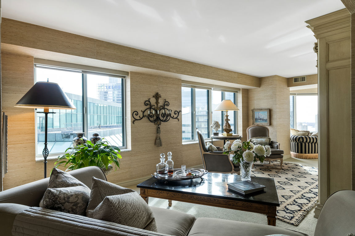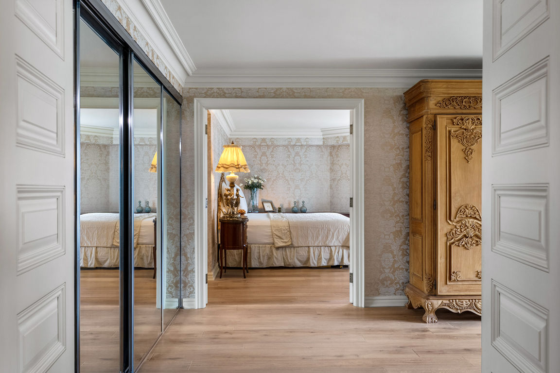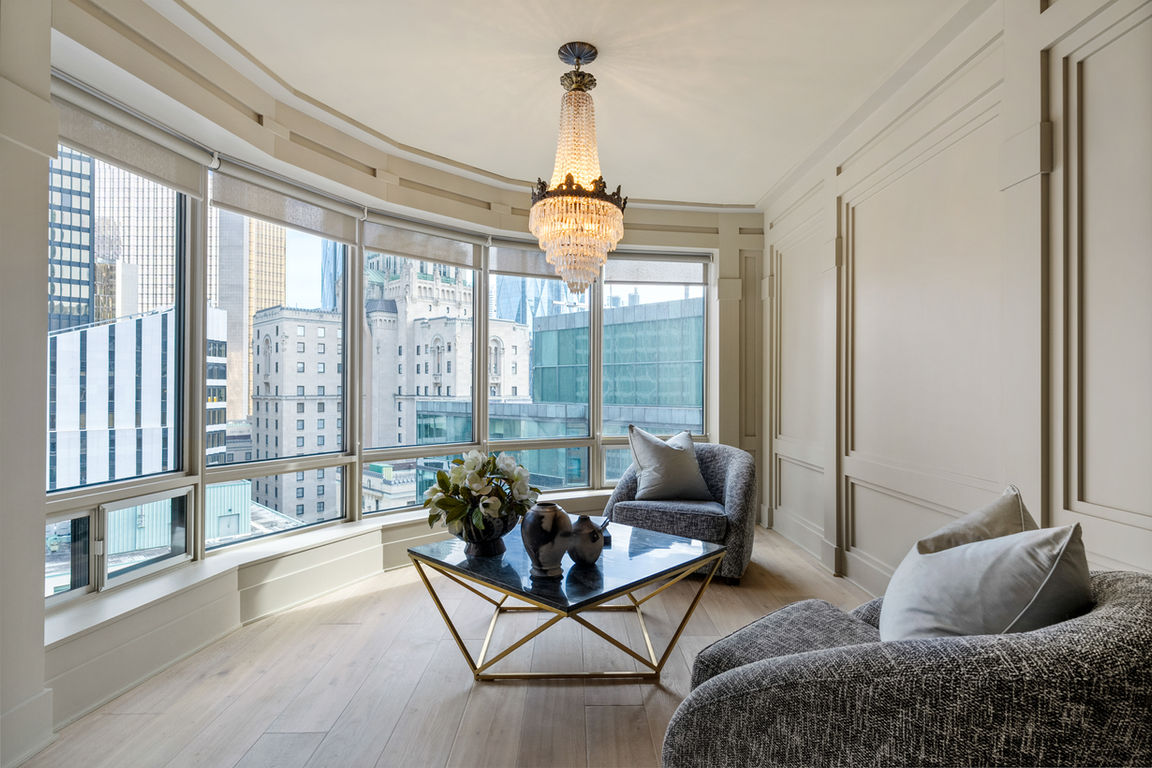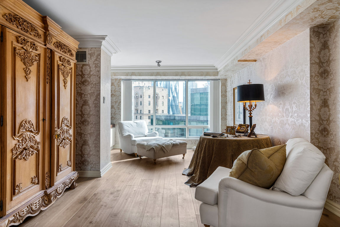 The expansive primary suite offers a spacious layout, separate dressing and sitting rooms, and a spa-inspired ensuite. The second bedroom is tucked away from the rest of the suite, providing ultimate privacy with its own sitting area overlooking the downtown core and Lake Ontario.